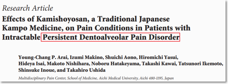 Arai, Y.-C. P., et al. "Effects of Kamishoyosan on Pain Conditions in Patients with Intractable Persistent Dentoalveolar Pain Disorder." Evidence-Based Complementary and Alternative Medicine (2015).